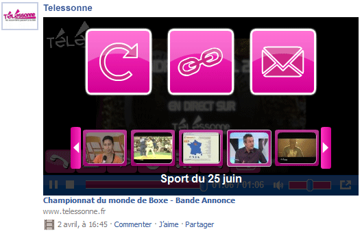 WebTV Light™ comprend un player Facebook™ personnalisable (couleur, logo, titrage), avec les fonctions web 2.0 et le choix de vidéos associées